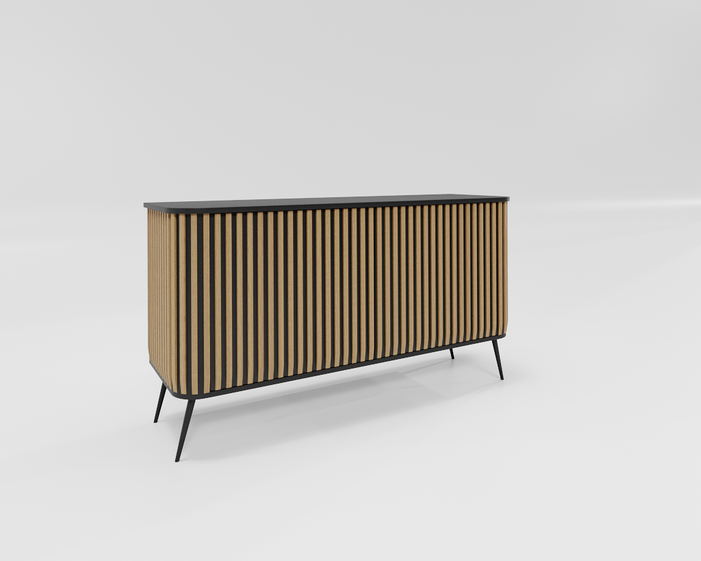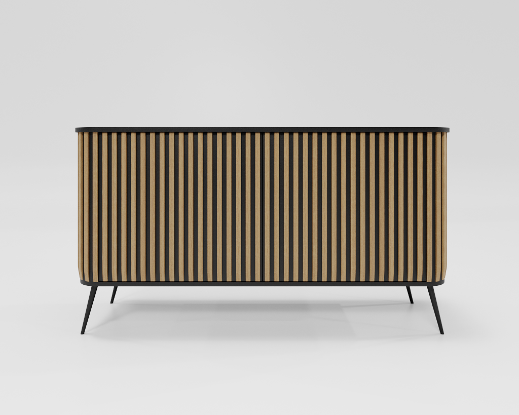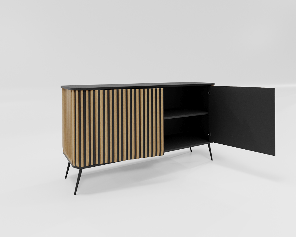 Do wykończenia mebla używamy najwyższej jakości barwników, bejc oraz lakierów marki Adler, wyprodukowanych według restrykcyjnych wymogów ekologicznych stosowanych w Unii Europejskiej. Zastosowano również najwyższej klasy okucia marki Blum i Grass – zawiasy puszkowe, zamknięcia frontów i szuflad typu push oraz komfortowe prowadnice szuflad z cichym domykaniem. Nogi mebla wykonane są ze stali lakierowanej proszkowo w kolorze czarny mat.