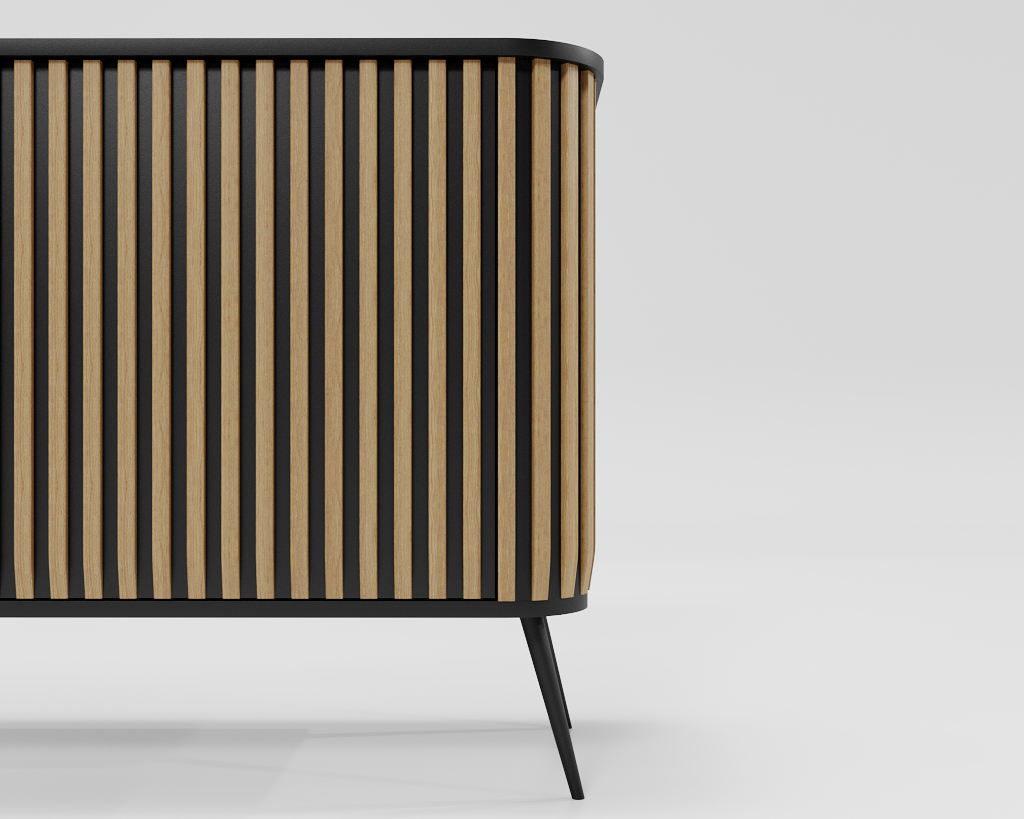 Kolekcja LAMELLE charakteryzuje się wykorzystaniem lameli z wyselekcjonowanego europejskiego litego drewna dębowego, pokrytego ekologicznym lakierem NATURA w głębokim macie. Lamele wspólnie z bazową konstrukcją mebla, zbudowanego w całości z połączenia wysokogatunkowego drewna liściastego oraz drewnopochodnych i odpornych na wilgoć płyt meblowych, tworzą wyjątkowy kontrast, który zachwyci każde oko.